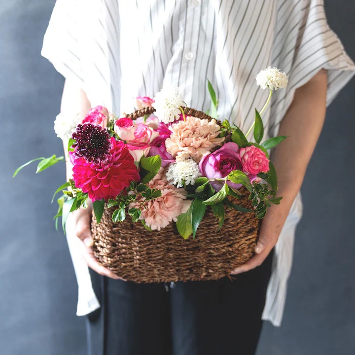 定番のアレンジメントはもちろん、母の日ブーケとトートバッグのセットもご用意しました♪